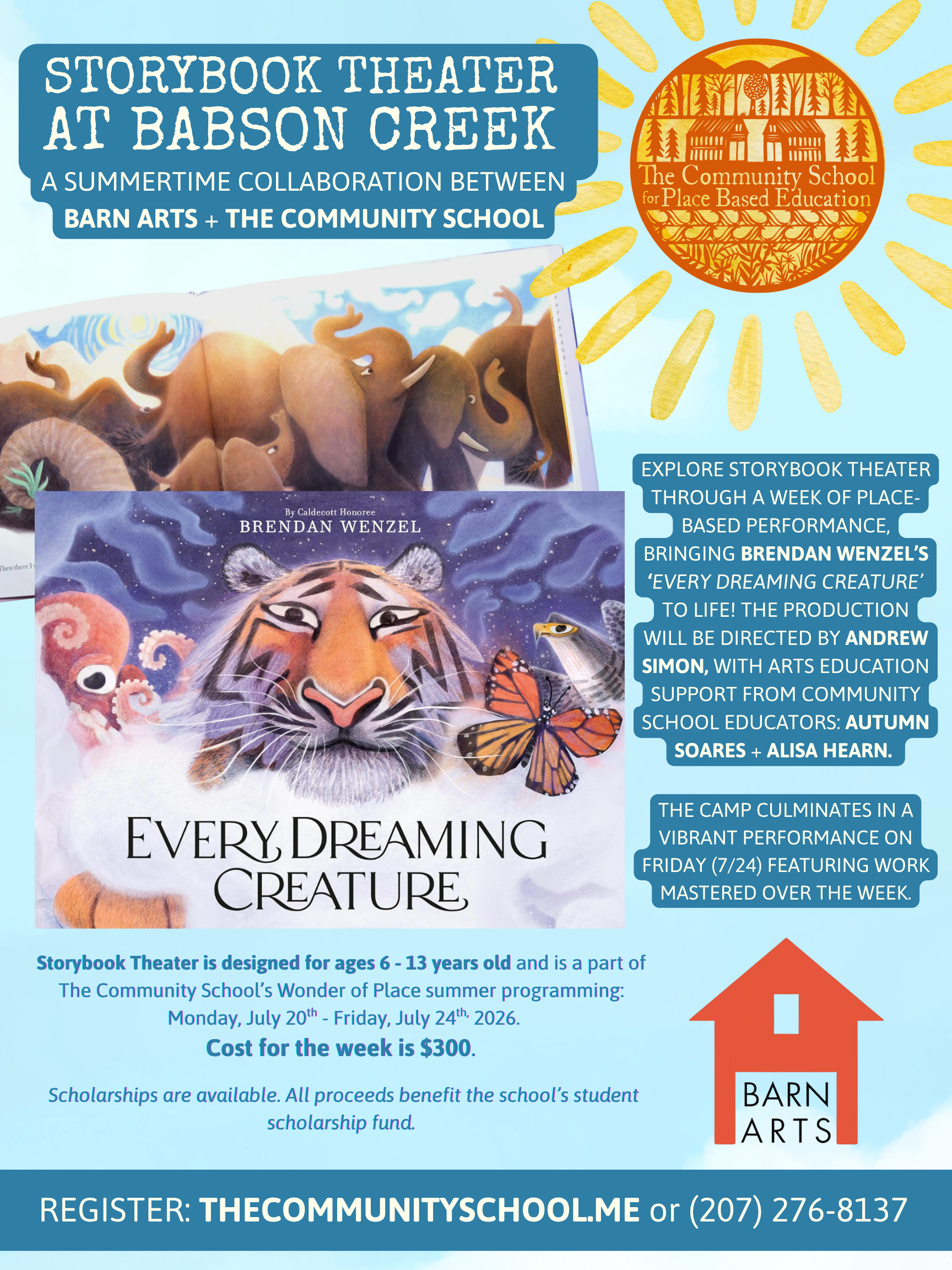 Storytime Theater is a part of The Community School’s Wonder of Place Summer Programming, which runs Monday, July 20 - Friday, July 24th, 2026. Culminating in a performance on Friday, July 24th.