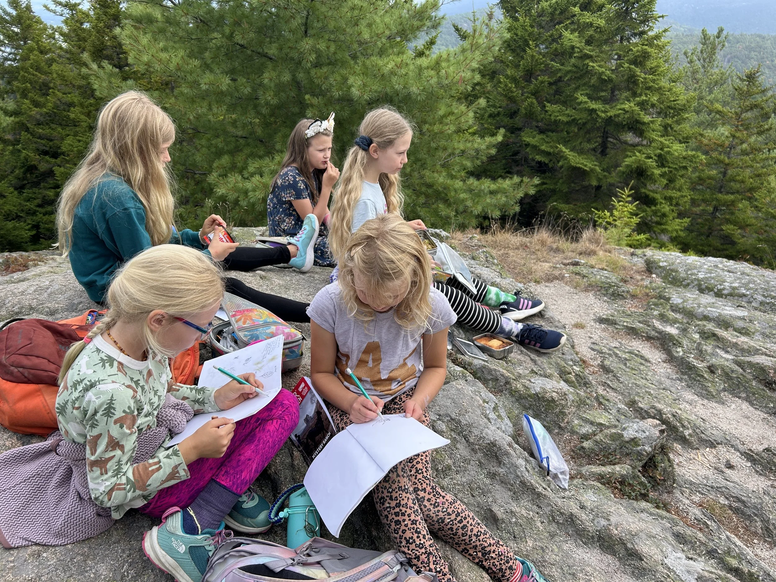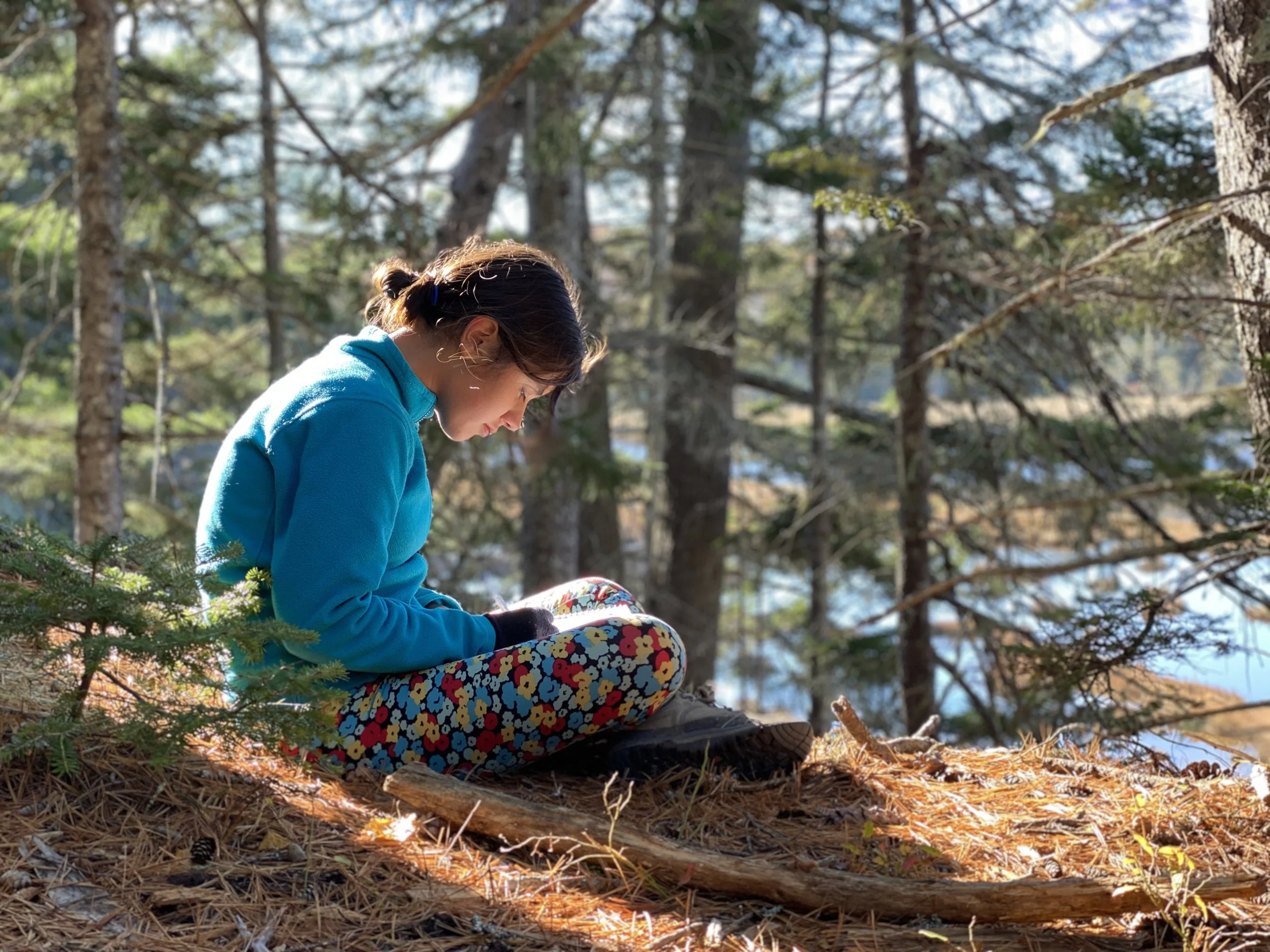 Academic workshops in the Woodland classroom build a solid foundation of knowledge that will carry students through the Intertidal and Alpine classrooms. Woodlands explore multiple lenses of self, place, and community in Expedition, where themes range from Birds, Flight, and Feathers to a study of Wabanaki culture in People of the Dawn. Students venture beyond the classroom and meet community members, to better understand their roles in the wider community. Each Expedition ends with a Final Project; for example, developing a portrait of a member of our community, or publishing a Field Guide of Native Maine Birds.