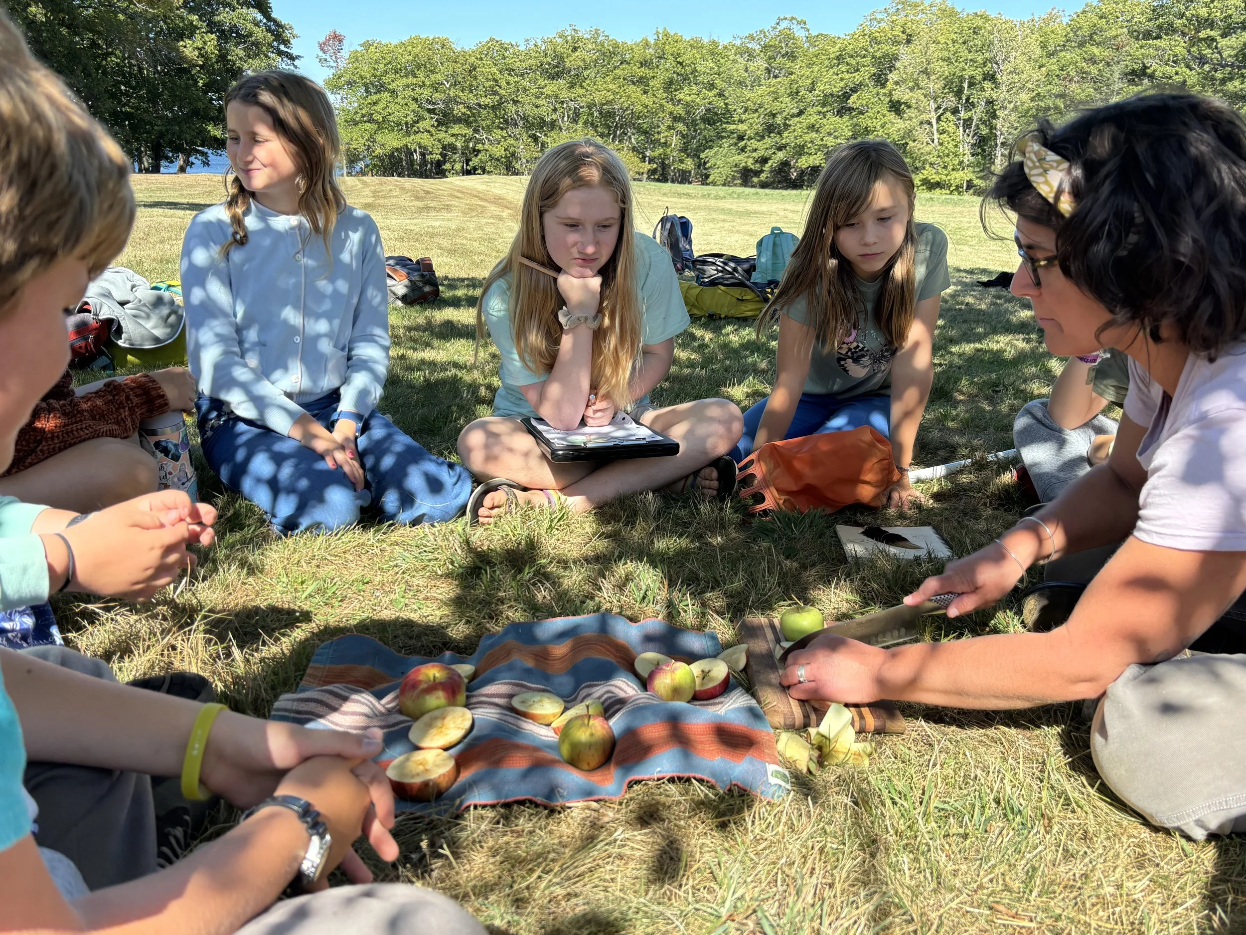 During Math Workshop, Alpines solve more complex problems and begin learning pre-algebra, building knowledge of integers and functions, basic algebraic operations, rates and ratios. Our practical applications include constructing a sundial on campus, developing models to predict alewife migration, and delighting in the chemistry of culinary arts and measurement.